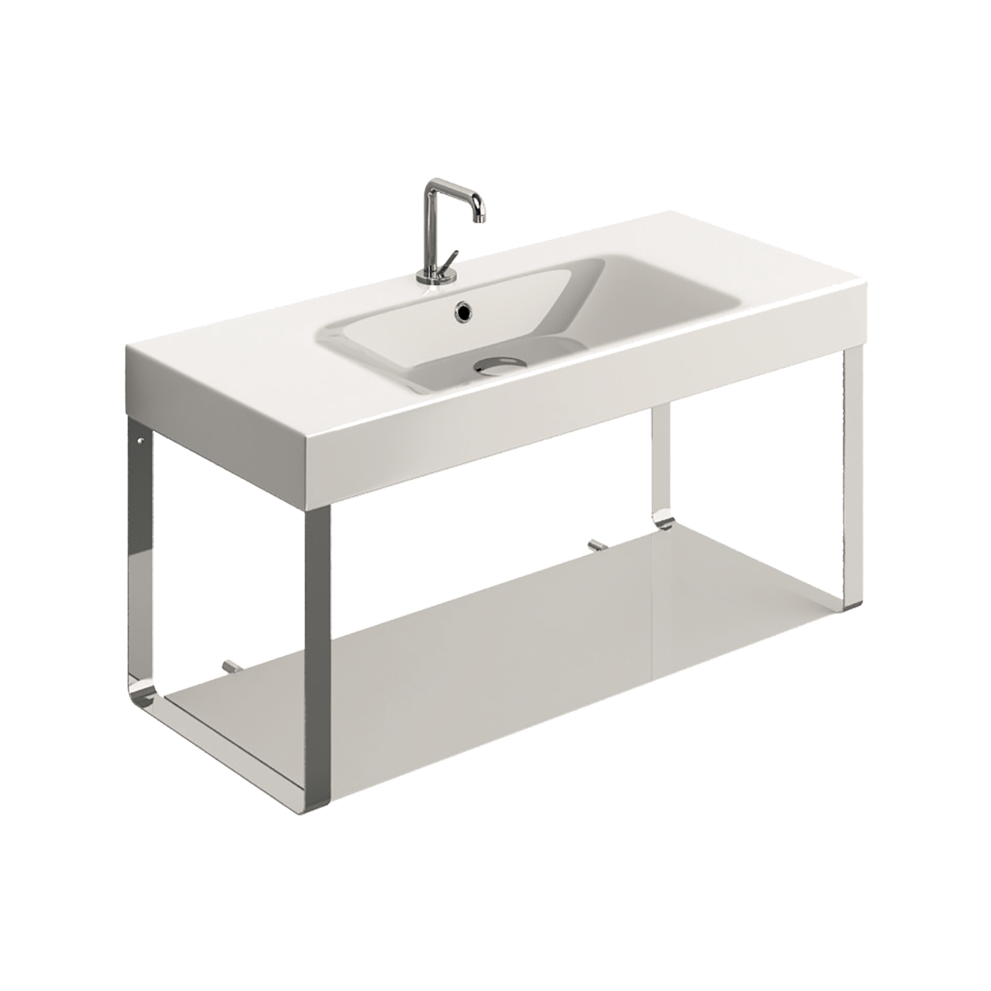 The washbasin is 100 cm wide and 45 cm deep. It has a rectangular shape that suits any kind of interior design project, from minor to major ones, because it singlehandedly provides distinctive traits anywhere it is placed. Combined with a backlit mirror or an original-framed one, this sink is the perfect furnishing solution to enhance medium-sized or large bathrooms, giving them a touch of elegance and a unique style. It is also useful to create a welcoming and comfortable relaxation area if combined with other sanitary ware from the Cento collection along with wall or floor tiles in natural colours or wood or stone effect tiles for a bathroom in harmony with nature. It is also possible to use the sink in contrast with an urban chic or metropolitan style bathroom or to create contrasting colour effects if mounted on dark-toned wall tiles.